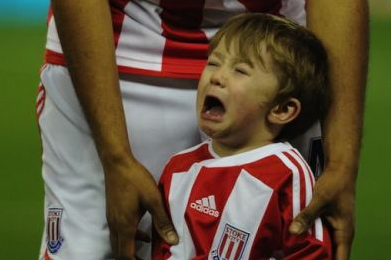 Acesta s-a speriat insa de jucatorul lui Stoke si a inceput sa planga. "Nu asta isi dorea de Craciun", au glumit englezii.